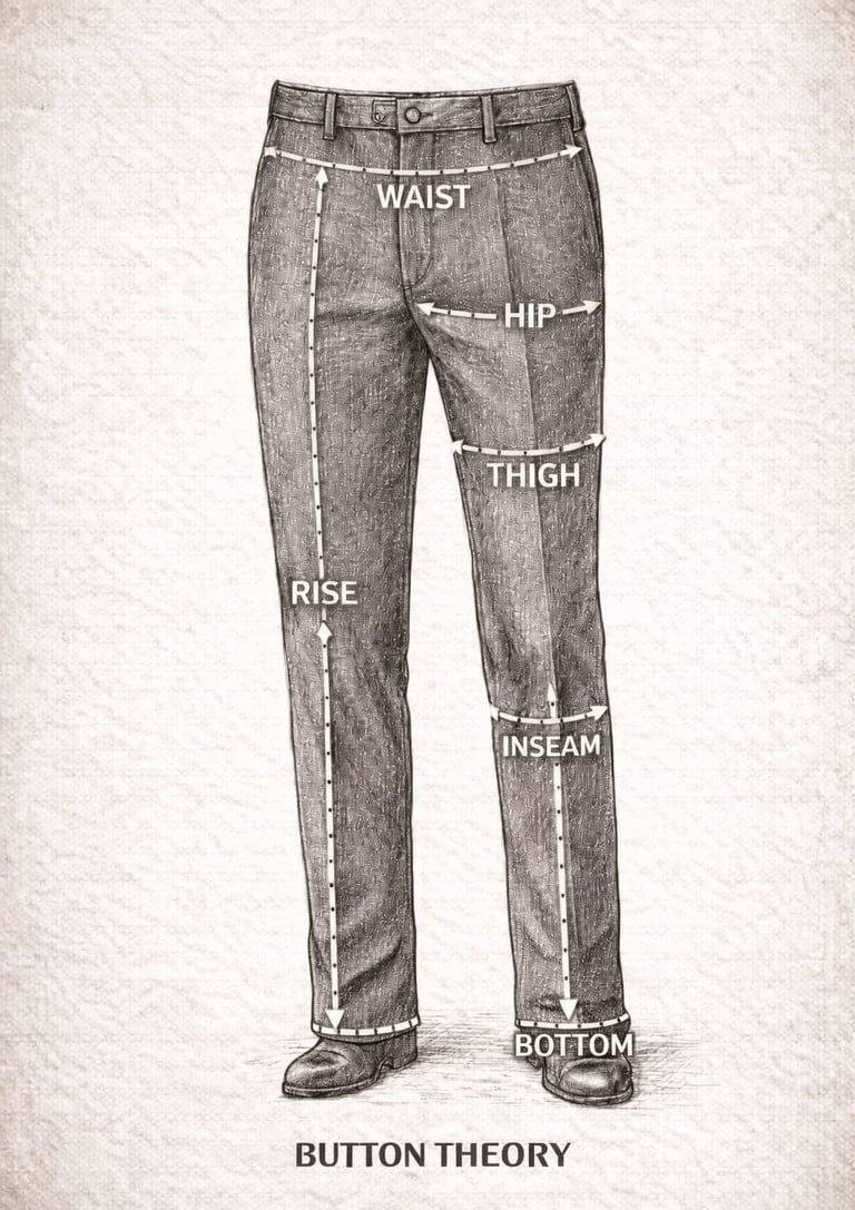 Customize your pant waist, hip, thigh, bottom, inseam, and full length for the perfect fit.